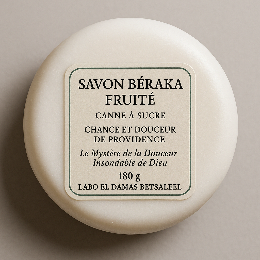 Seigneur Jésus, par ce Savon Beraka Fruite Canne a Sucre Chance et Douceur de Providence, Tu adoucis ce qui était amer ; Tu fais croître la douceur au milieu des marécages. Ouvre mes voies et manifeste Ta Providence. Amen.